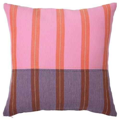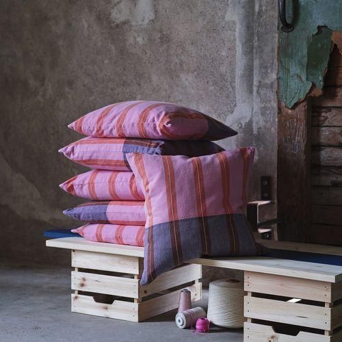 柔らかな綿を手織りしてつくったストライプのクッションカバー。さまざまなインテリアに合わせやすい色で、MAVINN メーヴィン コレクションのほかのテキスタイルとコーディネートが楽しめます