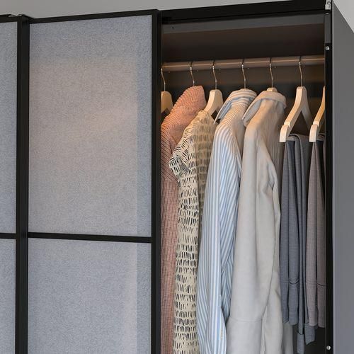 ワードローブフレームの内側に簡単に設置できます。付属の固定具を使って、上部または棚の下に取り付けられます