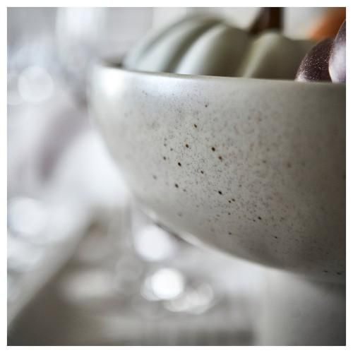 果物、軽食、それともフレッシュサラダ? 秋らしい色の斑点が入ったライトベージュのサービングボウルは、いろいろなものを盛りつけるのにぴったりで、どこに置いても目を引くデコレーションになります