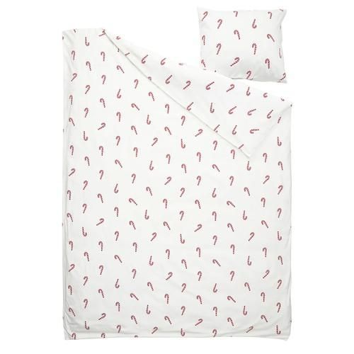 クリスマスを思わせる遊び心のあるキャンディケイン模様の掛け布団カバーセットは、クリスマスギフトにぴったりです